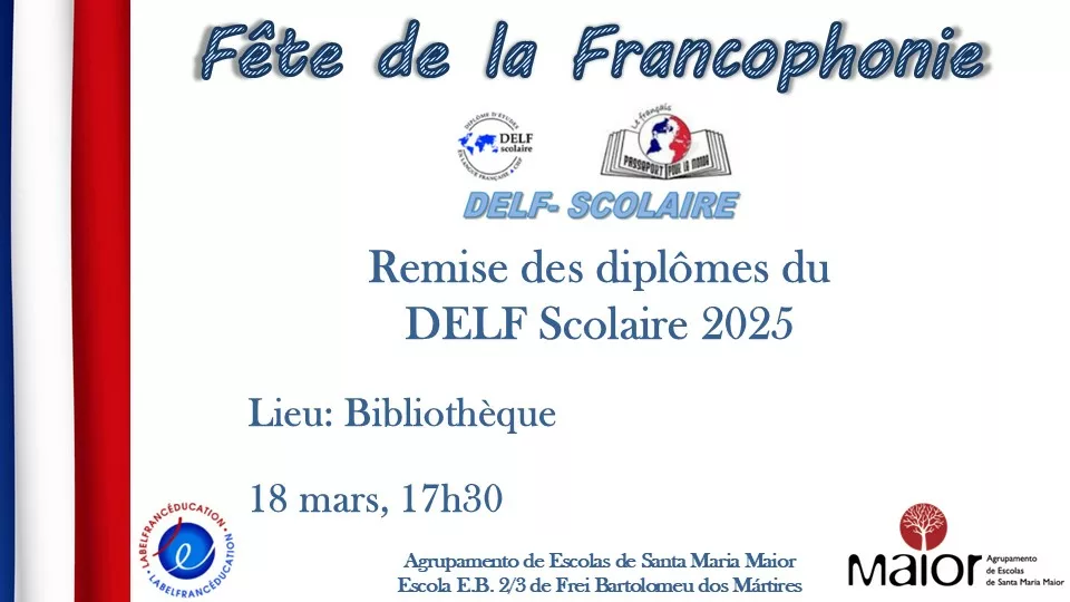 A entrega dos diplomas DELF 2025 terá como destinatários os alunos que realizaram o DELF Scolaire em 2025 e os respetivos encarregados de Educação.
