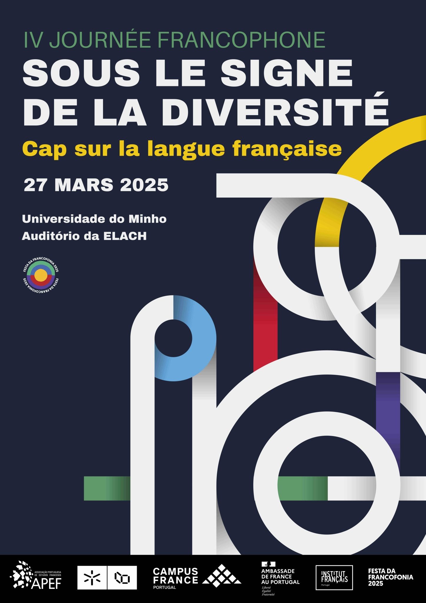 Pelo quarto ano consecutivo, em estreita colaboração com a Associação Portuguesa de Estudos Franceses (APEF), a jornada francófona «Rumo à língua francesa» realiza-se para divulgar o ensino e a investigação-criação da Secção de Estudos Francófonos e Italianos (AEFI) do Departamento de Estudos Românicos da Escola de Letras, Artes e Ciências Humanas (ELACH) da Universidade do Minho. Esta iniciativa conjunta reúne docentes e estudantes, com um foco especial nos estudantes.